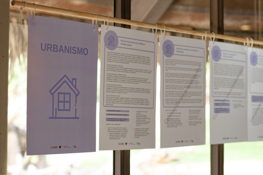 The URBANEW project, funded by the European Commission, aims to reduce the carbon footprint of the urban environment and promote the integration of clean energy through self-consumption and energy communities. It also promotes multi-level urban governance and the development of innovative financial schemes, especially for vulnerable households, in the seven Spanish mission cities. Carpe is developing a series of materials to bring the project closer to citizens. Among the resources developed is a metal support with representative photographs as well as visual elements that transform the characteristics of the chosen streets. A design of an interior scene of a house and the transforming elements are also developed. |